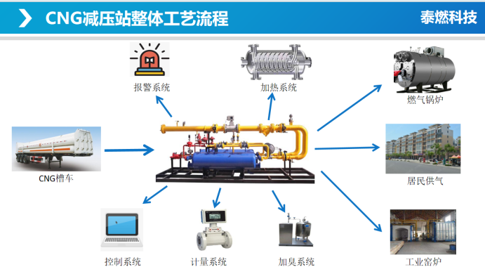當(dāng)管道氣不足時(shí),CNG減壓撬作為補(bǔ)充氣源,保障居民用氣。